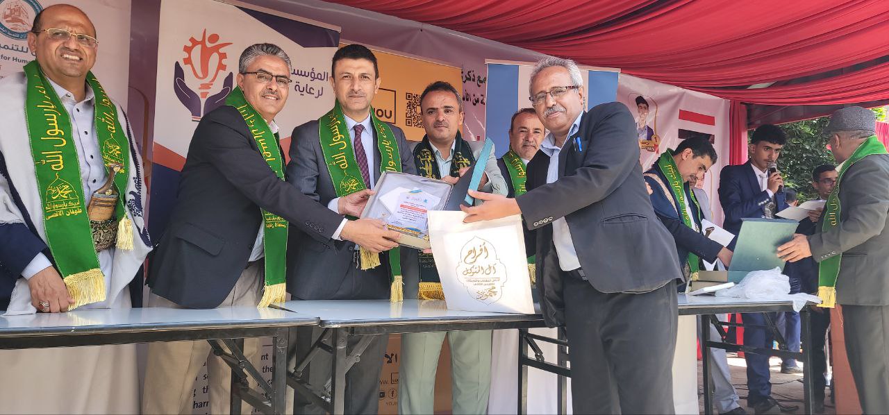 وعبر عن الشكر والتقدير لكل من ساهم في دعم المدرسة ، مشيراً إلى تزامن هذا التكريم مع احياء شعبنا اليمني العظيم لذكرى المولد النبوي الشريف على صاحبه أفضل الصلاة وأتم التسليم ، مضيفاً ” كما لا ننسى ونحن نعيش هذه الفرحة إخواننا المظلومين في غزة الذين يسطرون أروع الملاحم دفاعاً عن الأمة العربية والإسلامية ونحمد الله أننا في خندق واحد معهم وهذا بفضل الله وبفضل القيادة الحكيمة ممثلة بالسيد القائد عبدالملك بدر الدين سلام الله عليه.