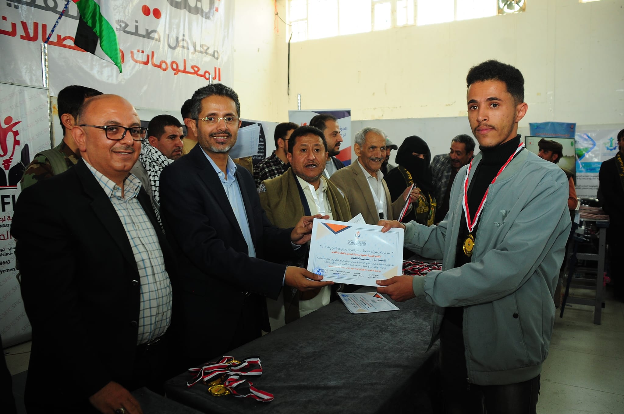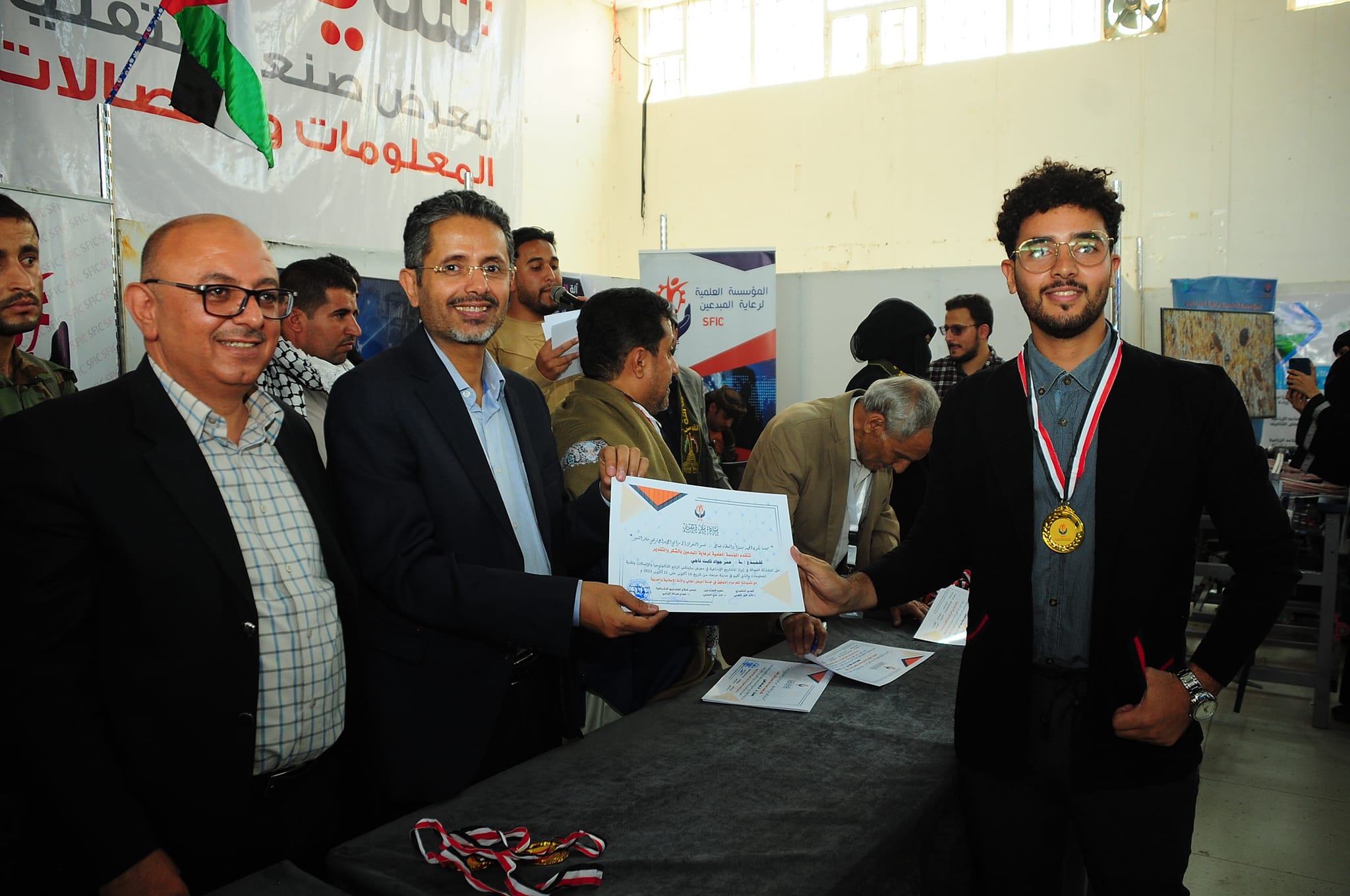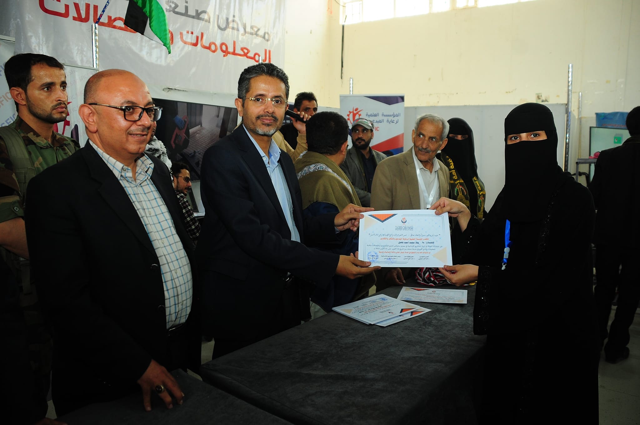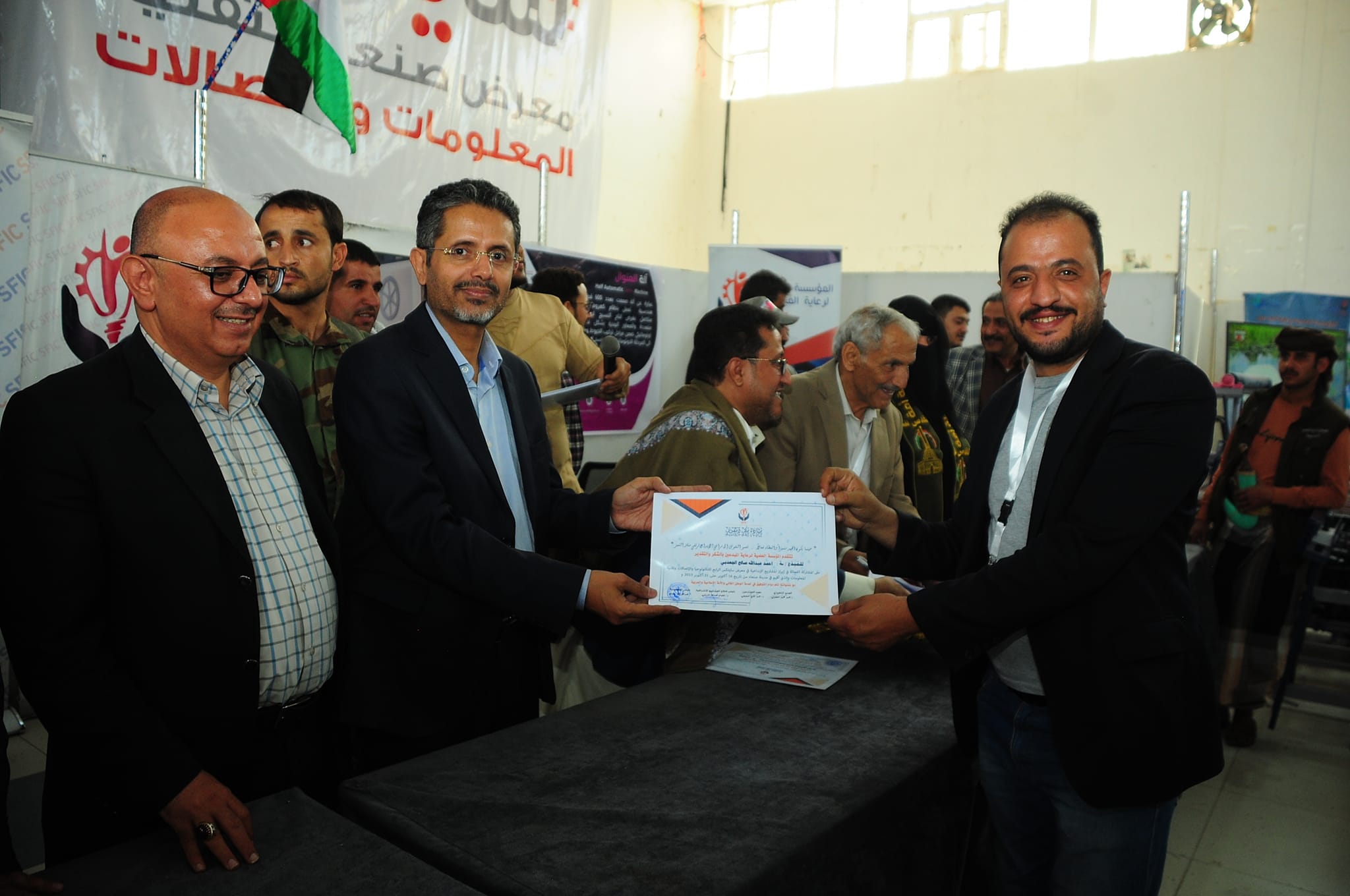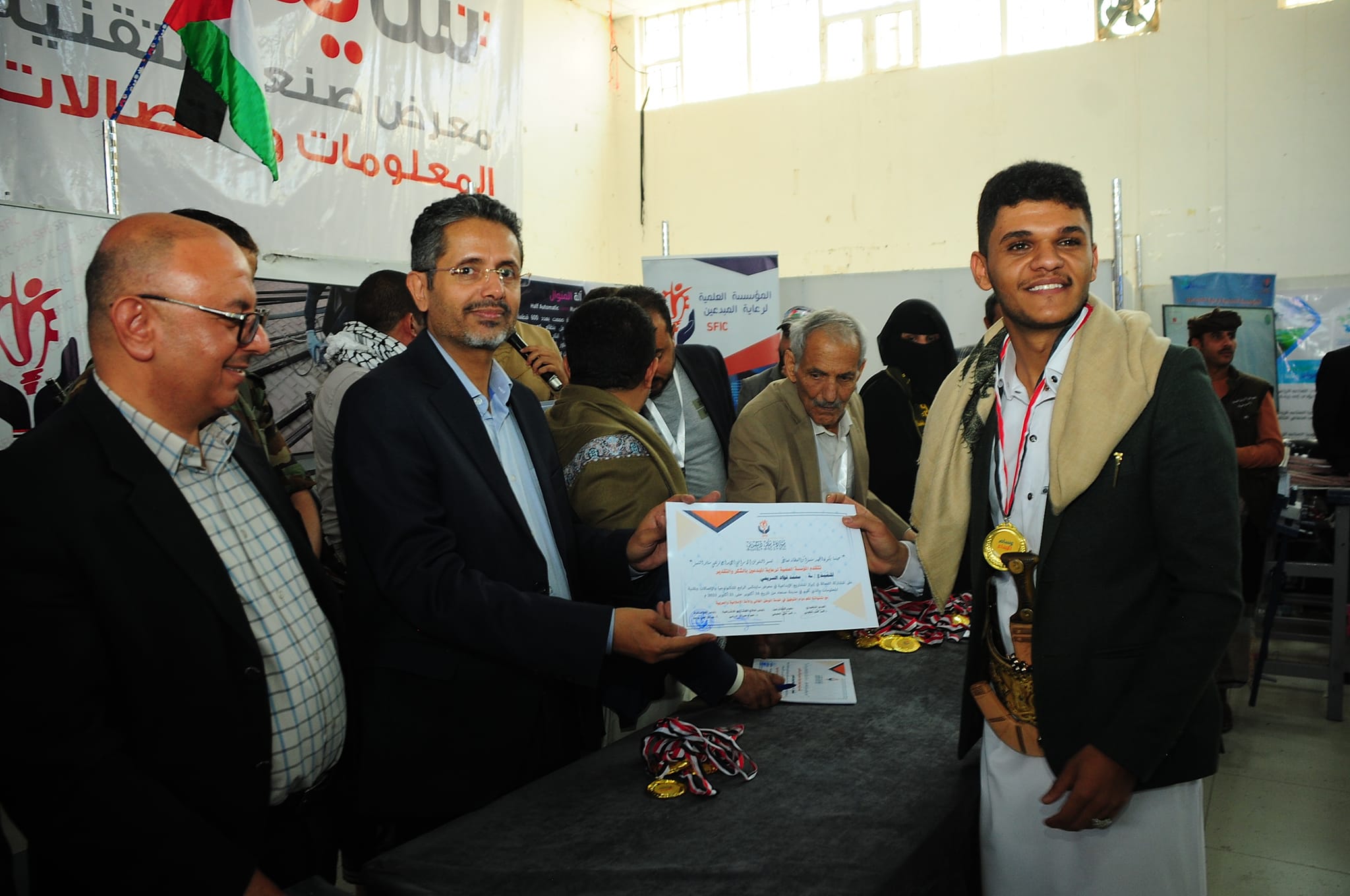 وقام أمين عام رئاسة الجمهورية ومعه ورئيس قطاع المشاريع الاشرافية بالمؤسسة العلمية لرعاية المبدعين الدكتور عصام الديلمي، ومشرف معرض صنعاء لتقنية المعلومات والاتصالات حسن الفران، وعميد المخترعين الدكتور محمد العفيفي، والمدير التنفيذي لقطاع المرأة بالمؤسسة، بتسليم المكرمين الميداليات والشهادات.
