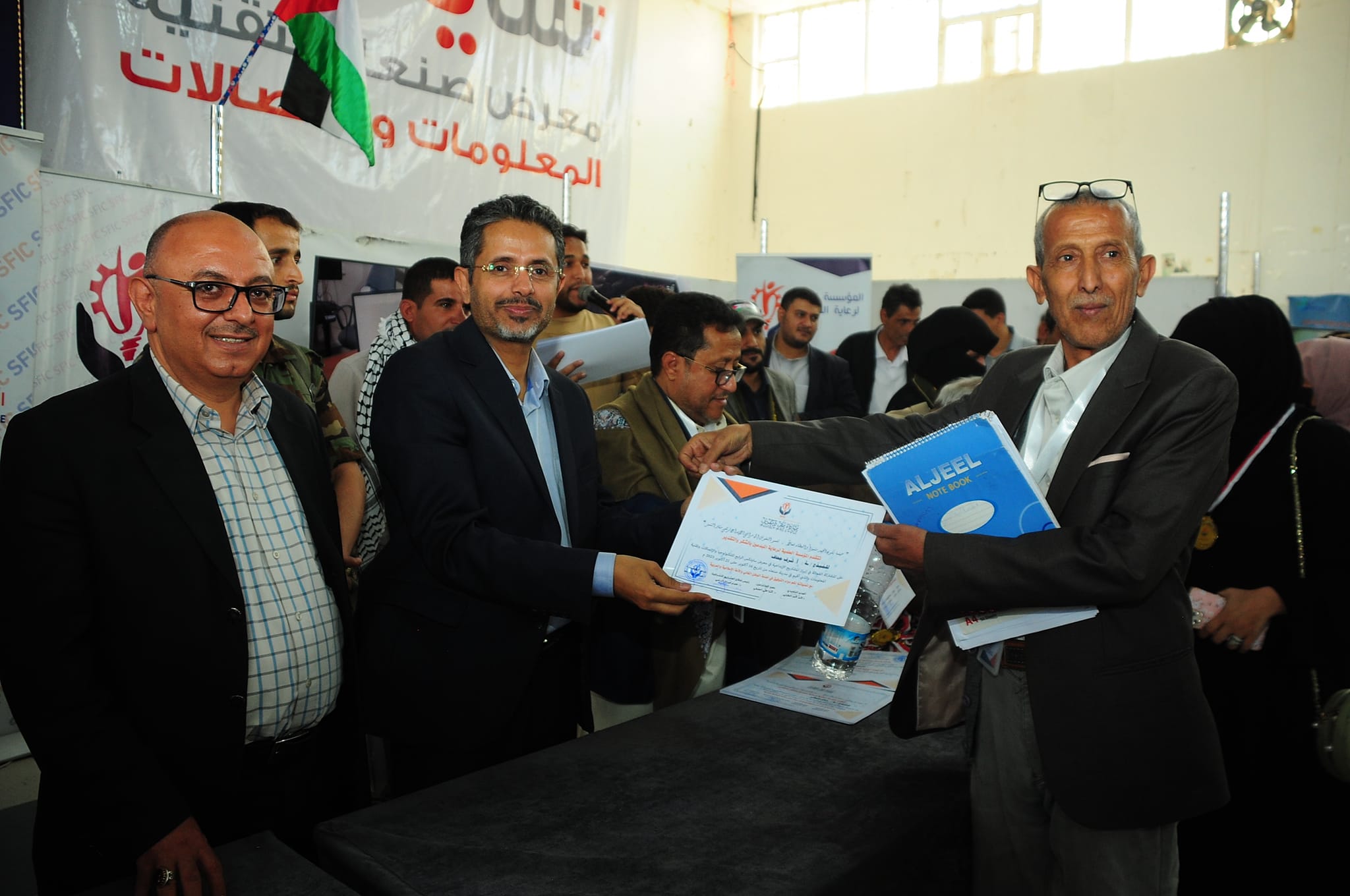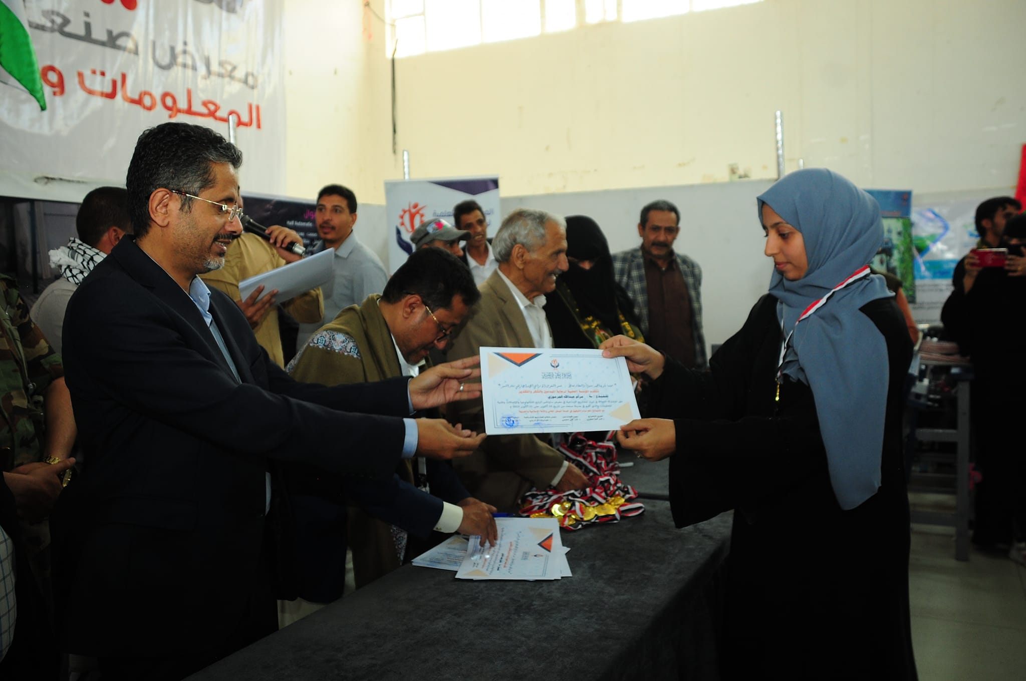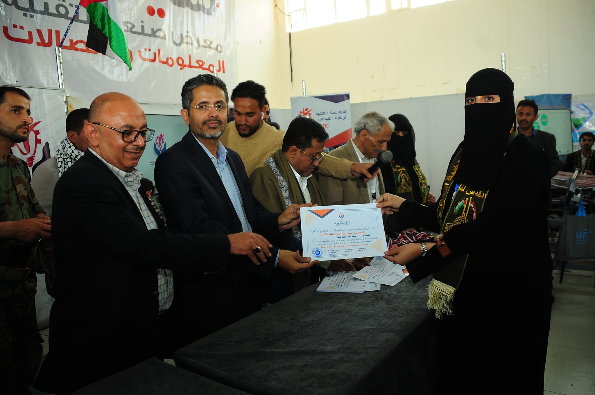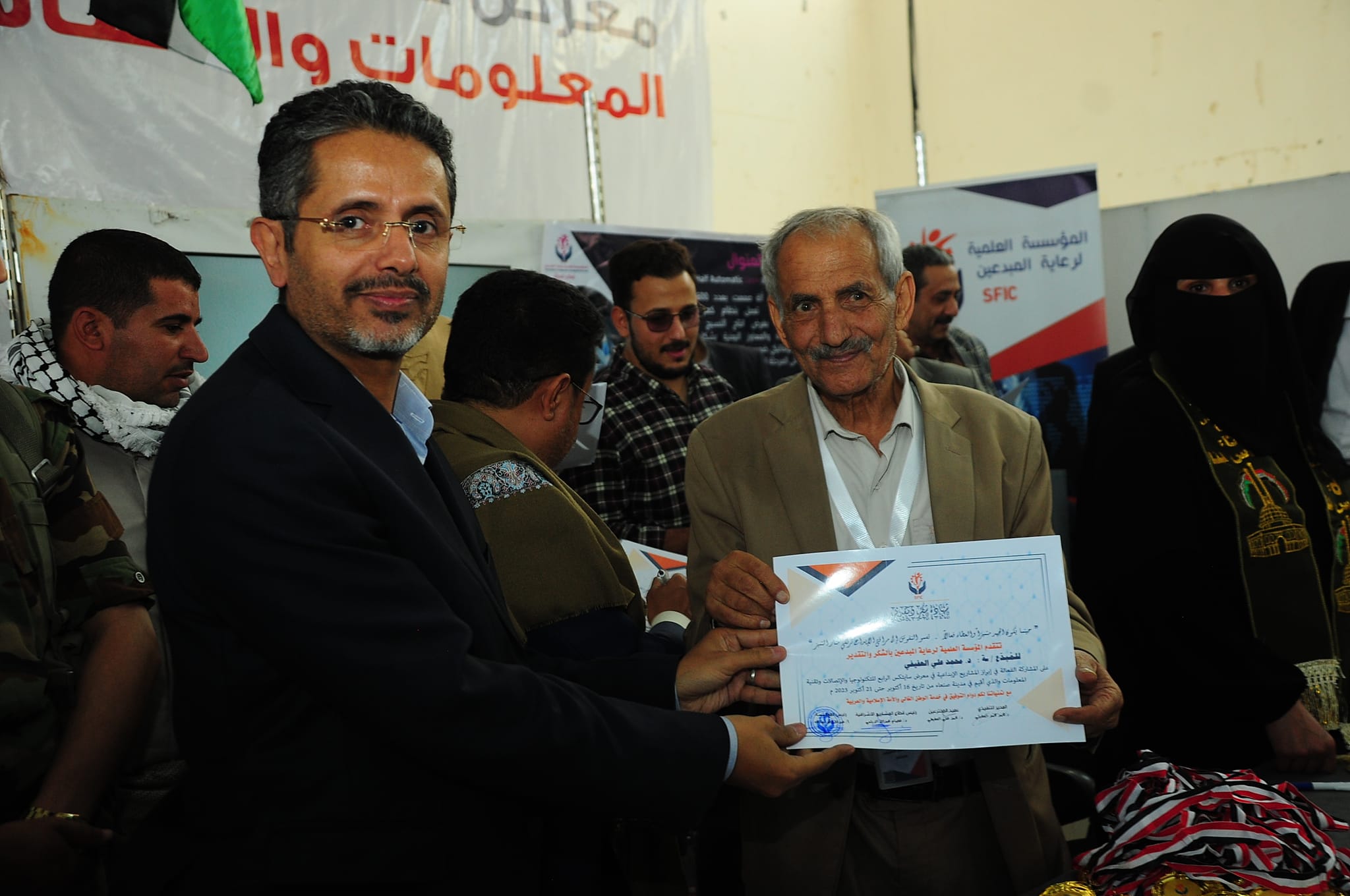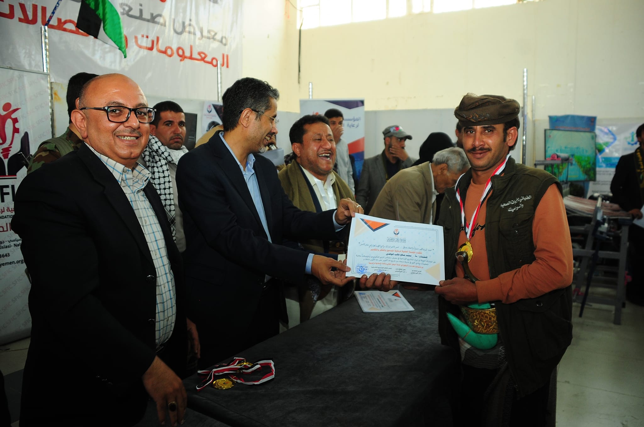 وقام أمين عام رئاسة الجمهورية ومعه ورئيس قطاع المشاريع الاشرافية بالمؤسسة العلمية لرعاية المبدعين الدكتور عصام الديلمي، ومشرف معرض صنعاء لتقنية المعلومات والاتصالات حسن الفران، وعميد المخترعين الدكتور محمد العفيفي، والمدير التنفيذي لقطاع المرأة بالمؤسسة، بتسليم المكرمين الميداليات والشهادات.