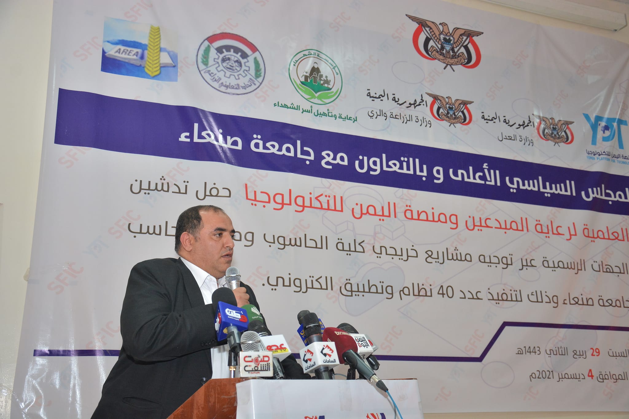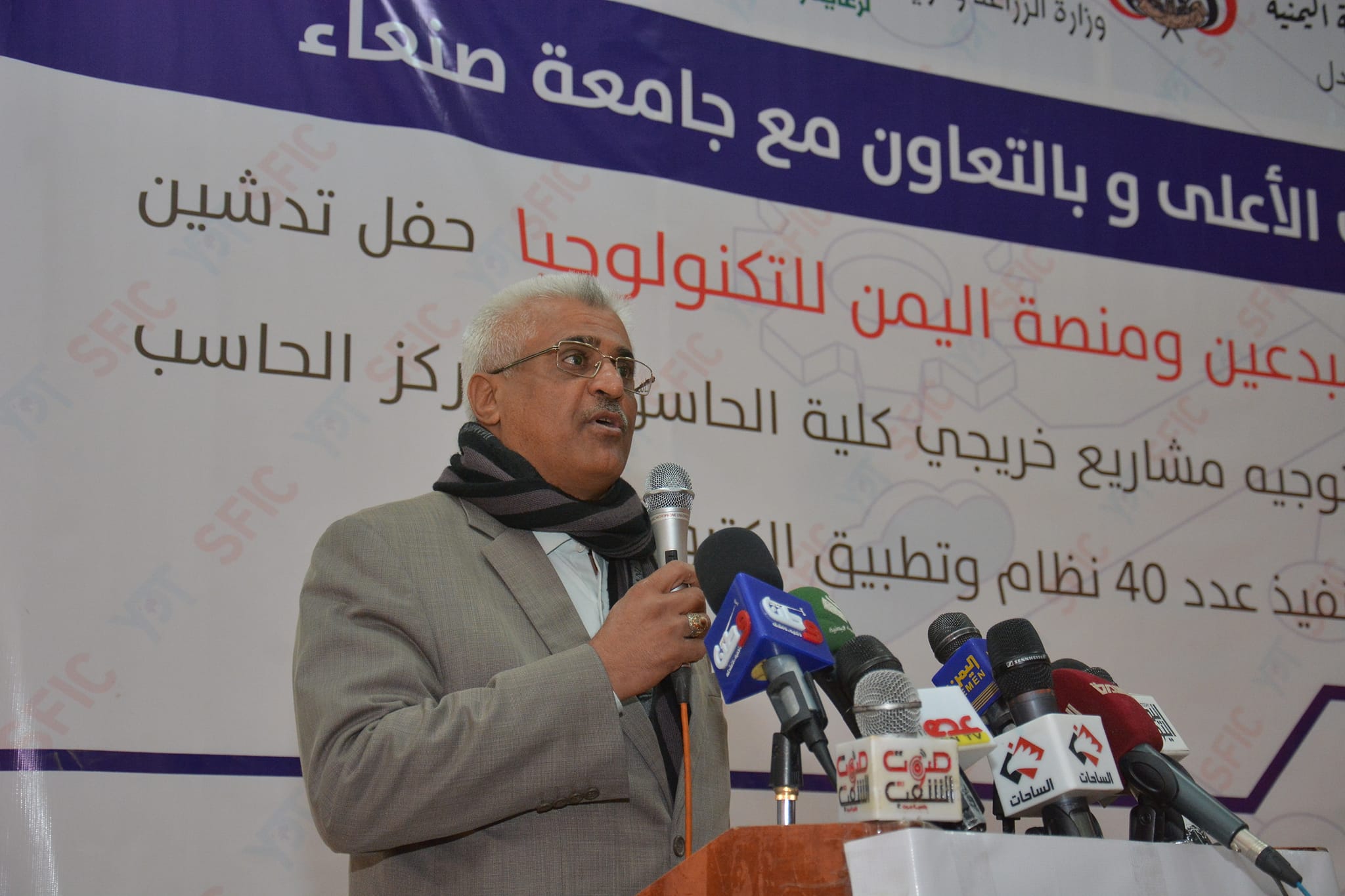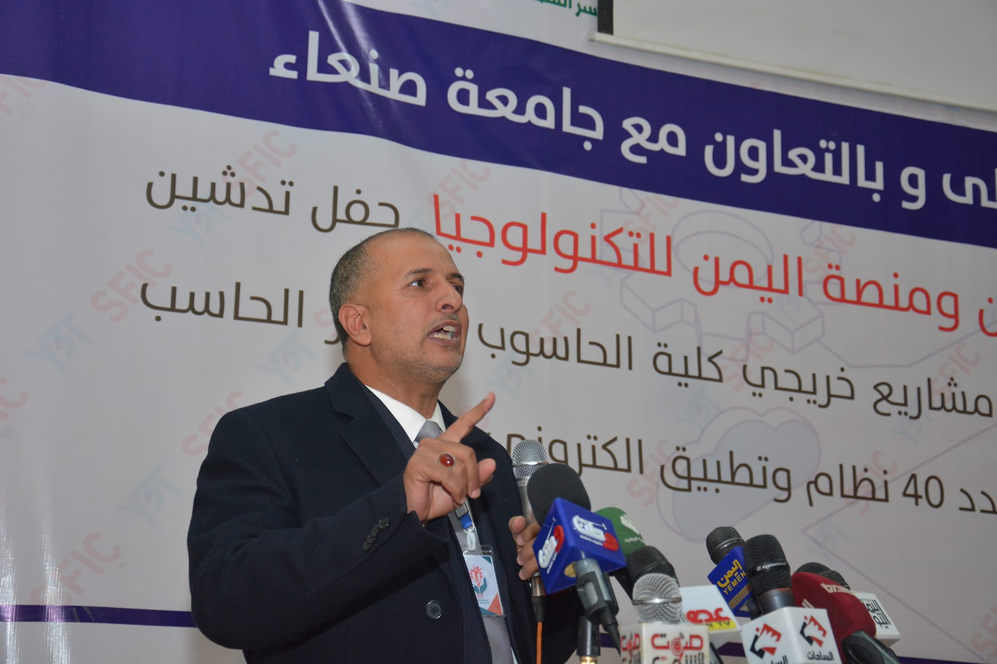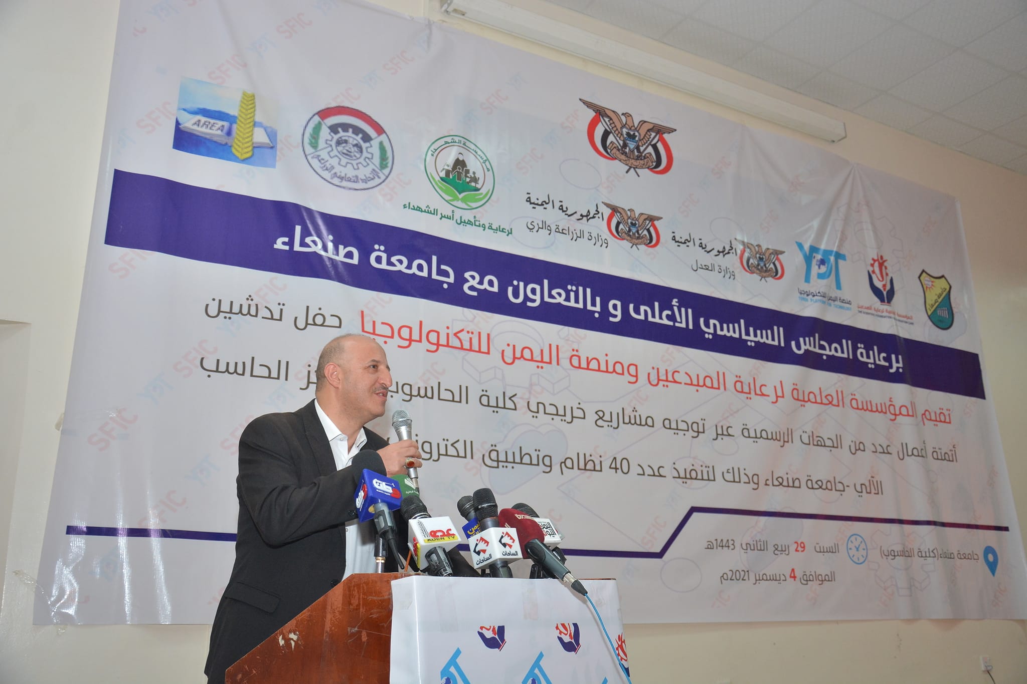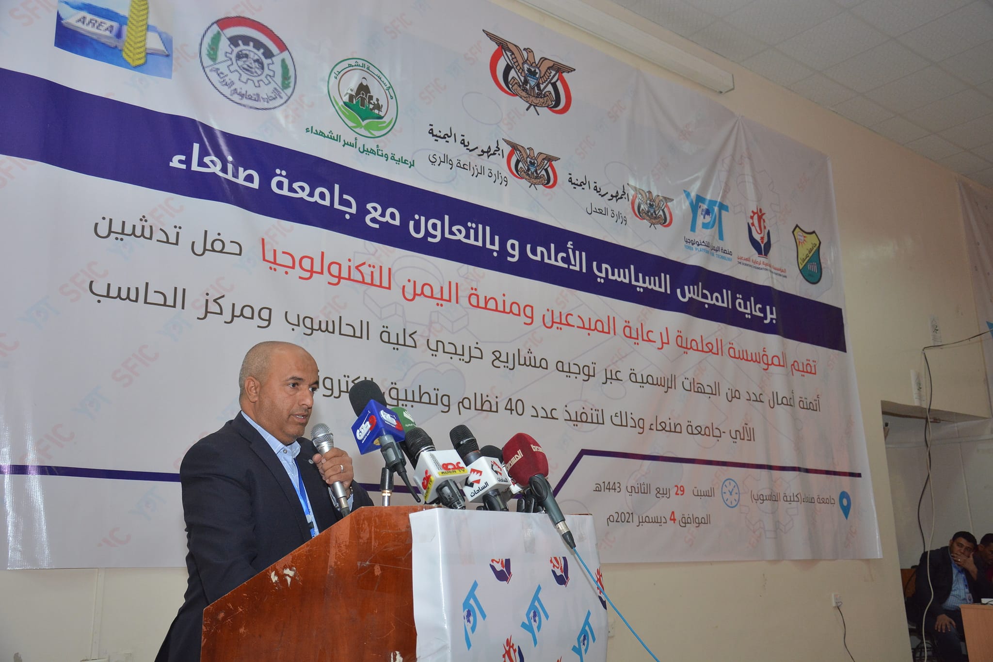 ولفت إلى ضرورة الاهتمام بالتدريب والتأهيل بما يخدم العملية التنموية وتعزيز الشراكة بين كافة مؤسسات الدولة والمؤسسة التعليمية، في تنفيذ مشاريع الأتمتة التي ترعاها المؤسسة العلمية لرعاية المبدعين ومنصة اليمن للتكنولوجيا بتوجيه مشاريع خريجي كلية الحاسوب ومركز الحاسب الآلي بجامعة صنعاء.