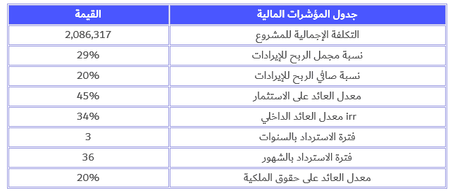 الملخص المالي للمشروع: